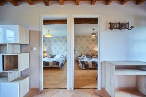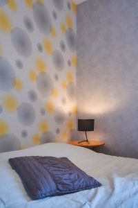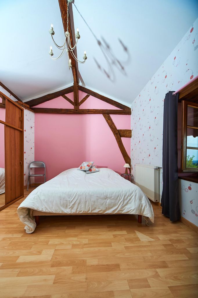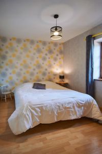 Sur ce même étage, se trouve deux chambres, toutes deux composées d’un lit de 160 cm, d’une table de chevet avec lampe et d’une penderie.