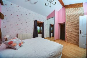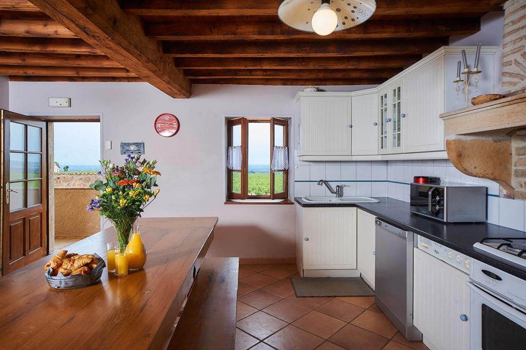 «Le Beaujolais» région viticole composée des 10 crus, est ici un gîte de 10 personnes, ainsi chacun a son cru. Cet endroit essentiellement sous un art boisé, vous emmènera dans un univers chaleureux. La cuisine au plafond à la française avec ses poutres apparentes et sa table atypique réalisée avec un ancien pressoir en bois, est un mélange aux couleurs du Beaujolais.